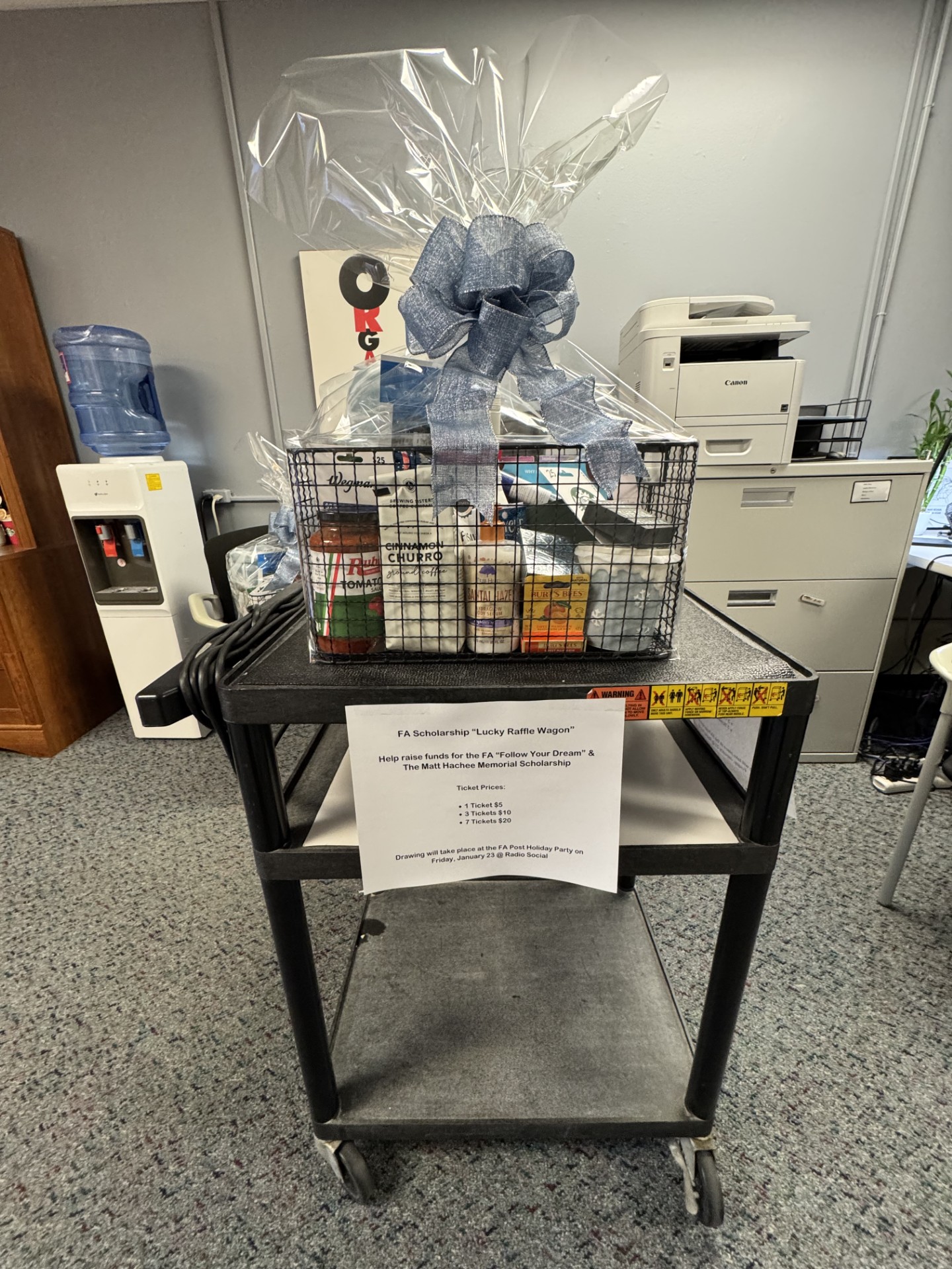 Today is your chance to purchase your winning raffle ticket to win one of two beautiful gift baskets to help raise funds for the Matt Hachee Memorial Scholarship and the FA "Follow Your Dream" Scholarship honoring retiree, Donna Burke.